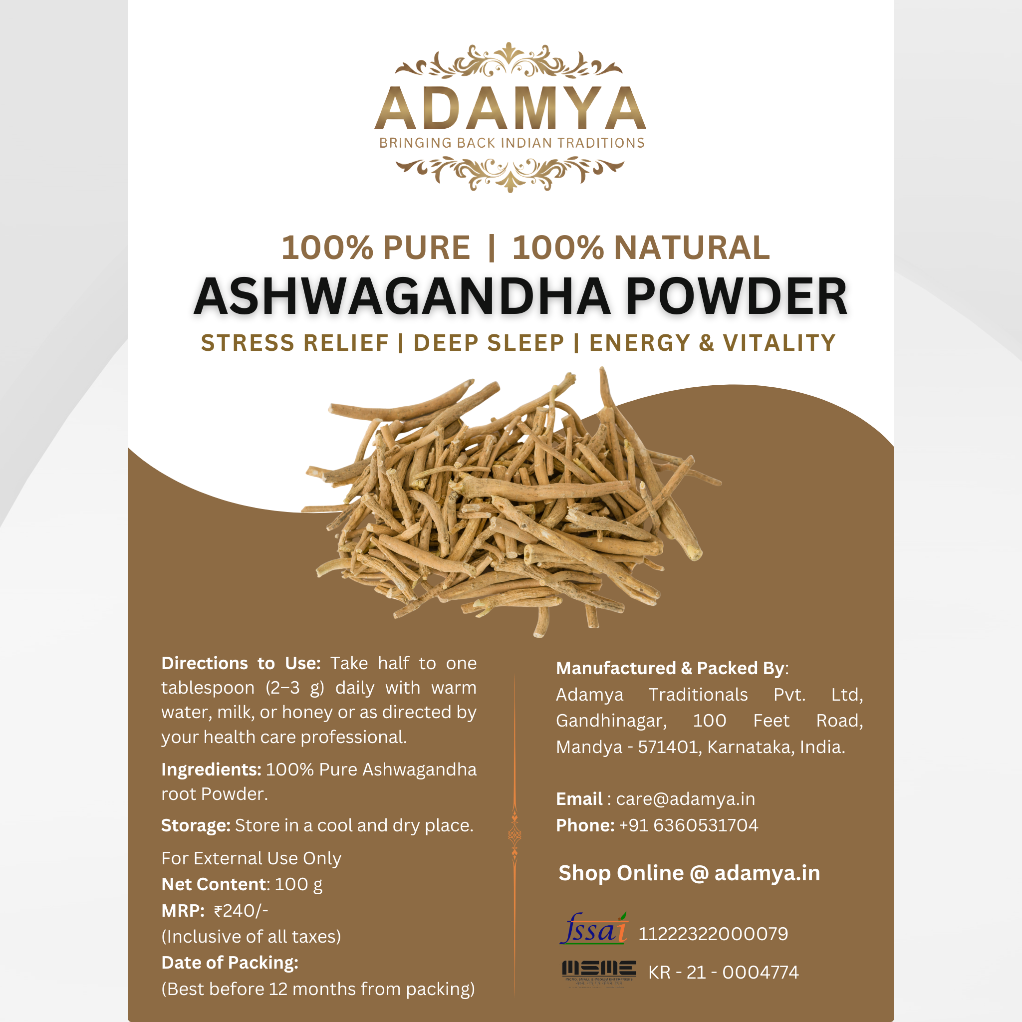 From the earth where Ashwagandha roots draw their strength, to the careful preparation that preserves their essence - Adamya’s Ashwagandha Powder is more than a supplement.